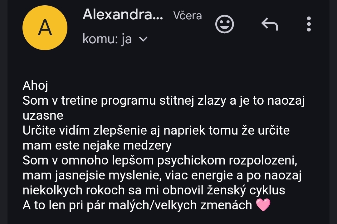Absolventka kurzu Petra sa BEZ ZMENY LIEČBY zbavila návalov tepla a únavy, vylepšil sa jej spánok. Sama napísala, že to bol pre ňu gamechanger a zázrak🎉